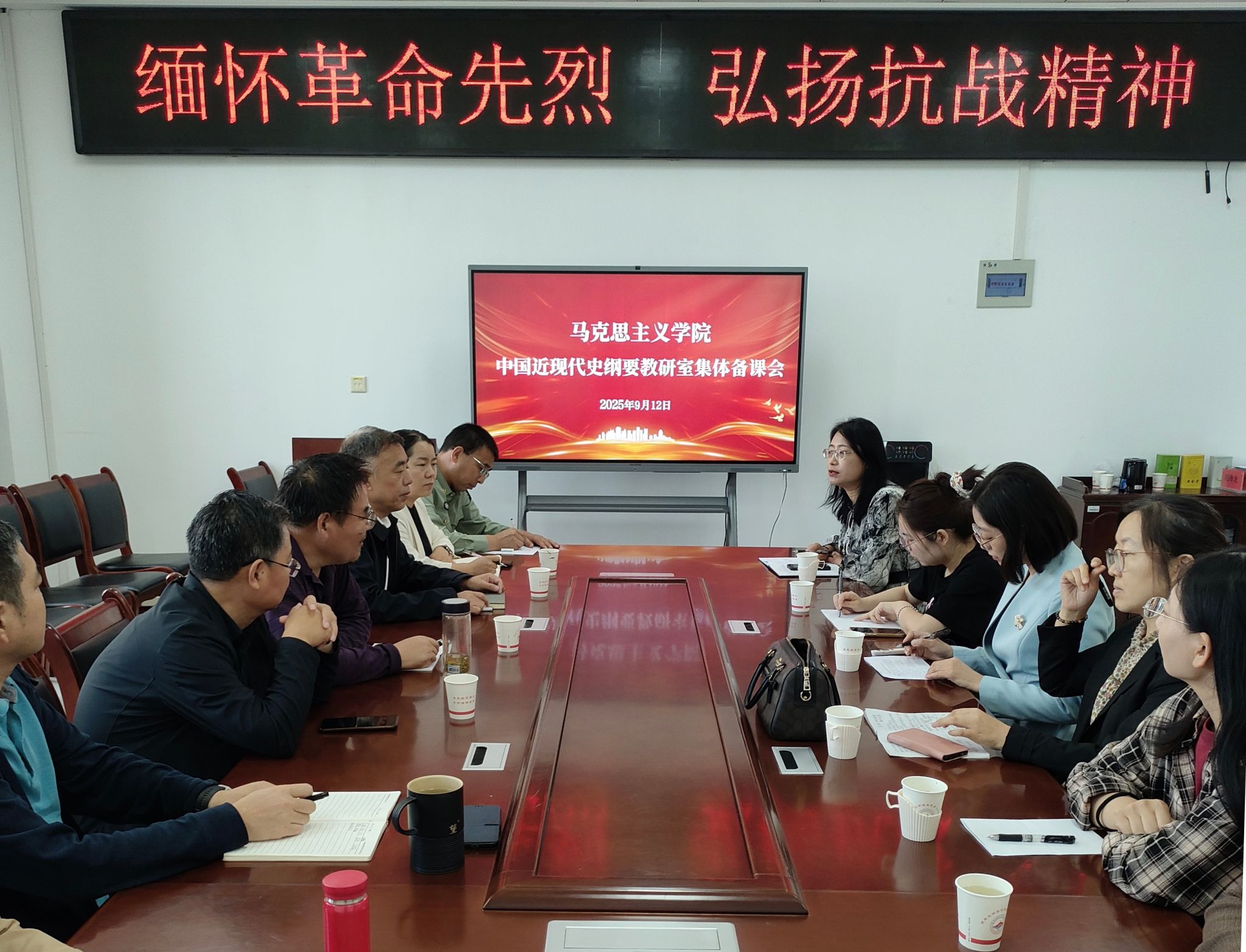 为纪念中国人民抗日战争暨世界反法西斯战争胜利80周年,深入学习贯彻习近平总书记关于“弘扬伟大抗战精神”的重要讲话精神,更好地将中国人民伟大抗战精神有效融入“中国近现代史纲要”课的教学中,9月12日上午9时30分,williamhill英国威廉希尔中国近现代史纲要教研室在公司312会议室举行了“缅怀革命先烈,弘扬抗战精神”的主题备课会。备课会由教研室主任马慧芳老师主持,公司高布权经理、张彬书记、亢鸽副经理以及全体教研室成员参加了会议。