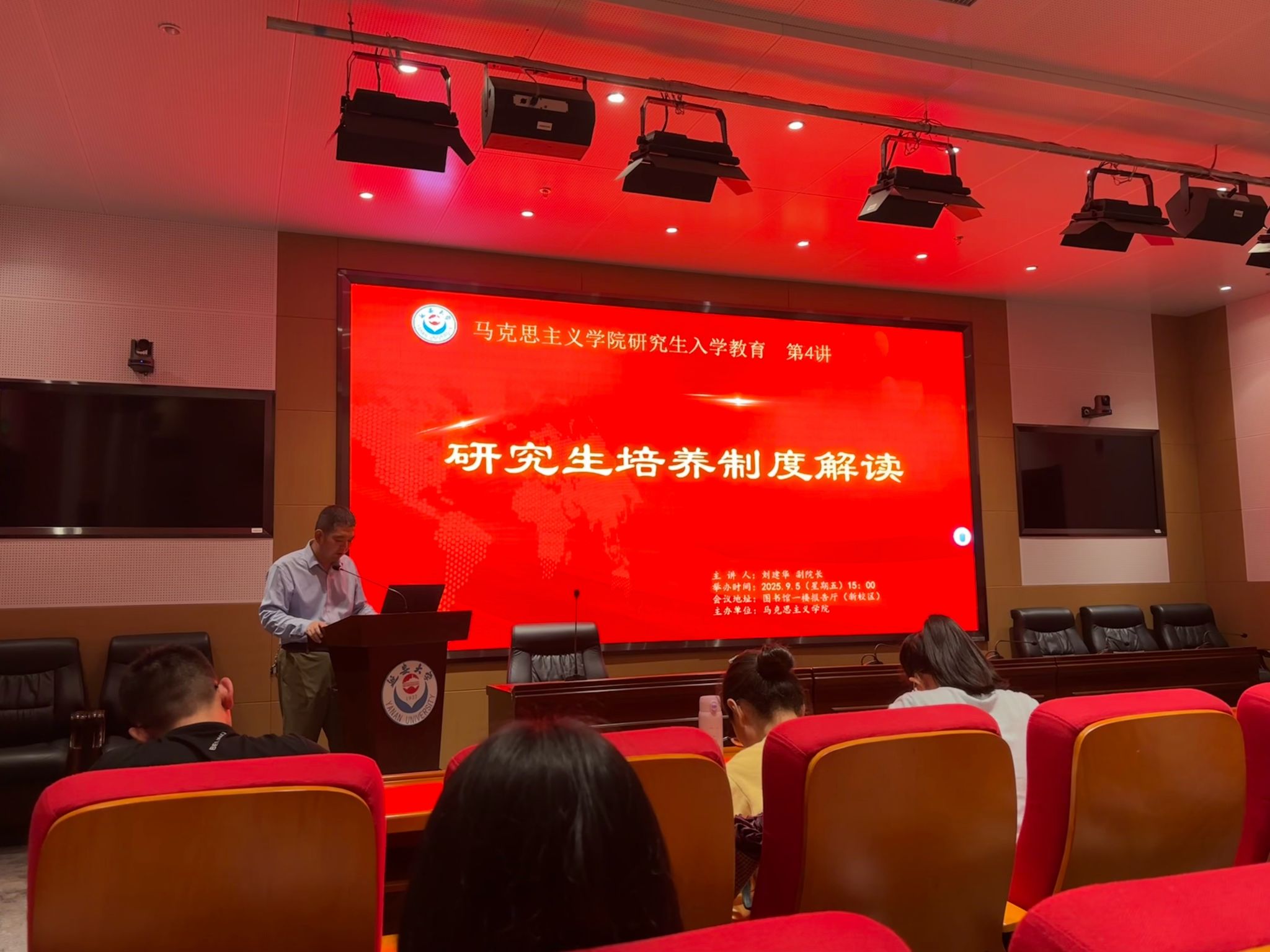 为帮助新入学的2025级硕博研究生明确培养目标、熟悉管理流程,9月4日下午3点,研究生入学教育第四课——“研究生管理制度与培养制度解读”在图书馆一楼报告厅举行。本次课程由刘建华老师主讲,深入解读《williamhill英国威廉希尔专业学位公司产品管理工作规定(2025修订)》与《williamhill英国威廉希尔学术学位公司产品管理工作规定(2025修订)》两大核心文件,为新生搭建起“知培养、明方向”的清晰框架。