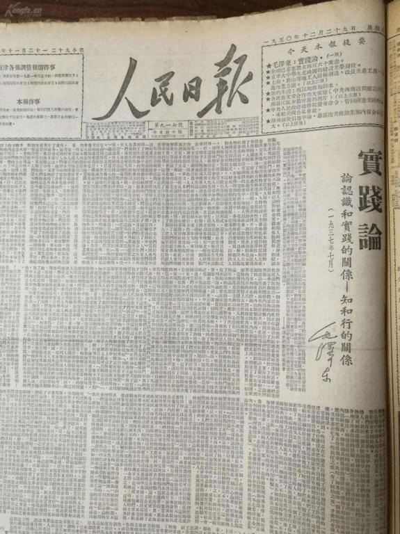在人民日报中转载的《实践论》