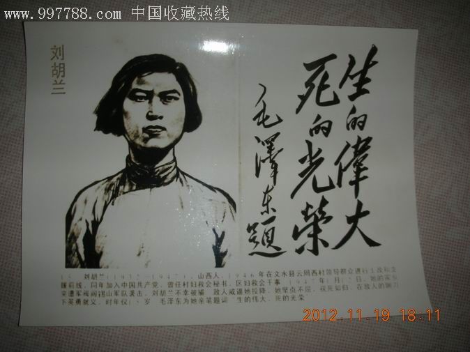 19472月,山西《晋绥日报》连续几天刊登了一位仅15岁的女共产党员英勇就义的消息。后来,毛泽东还为她亲笔题词:“生的伟大,死的光荣!”这位年轻的女共产党员就是刘胡兰。
