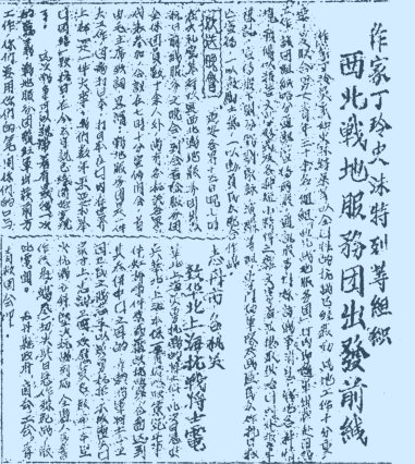 作家丁玲史沫特列等组织 西北战地服务团出发前线