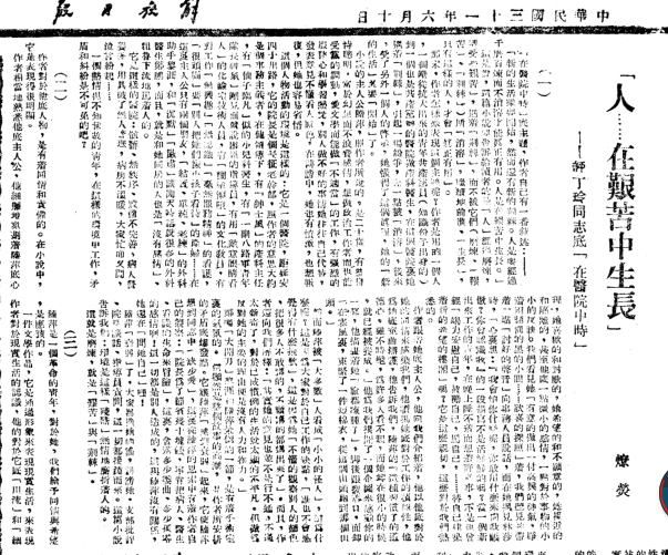 人……在艰苦中生长」──评丁玲同志底「在医院中时
