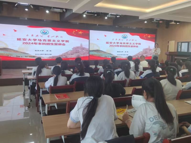 在延安市第一中学见习,同学们分为两个小组,每个小组听课三次。听课结束后,苏洁老师为延安市第一中学高三员工开展了精彩的招生宣讲会,并从心理角度对考前员工进行了疏导,鼓励员工要相信自己,一定能考取到自己满意的大学。