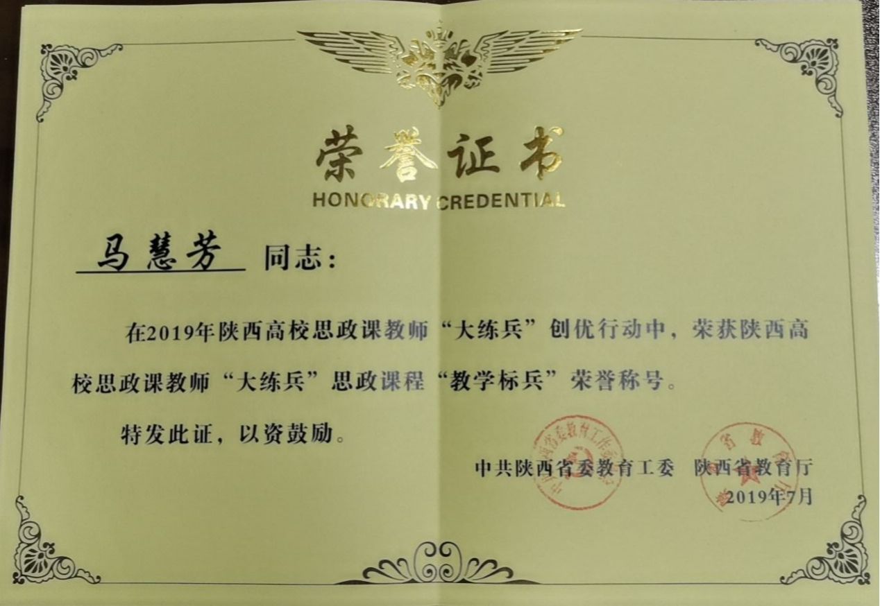 2019年陕西高校思政课教师“大练兵”——马慧芳获“教学标兵”称号