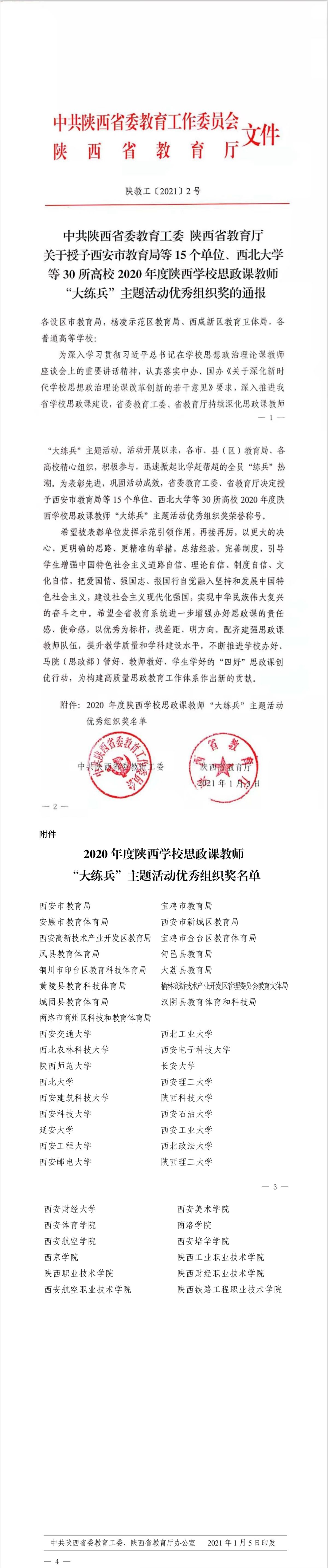 关于2020年度陕西公司思政课教师“大练兵”主题活动优秀组织奖的通报