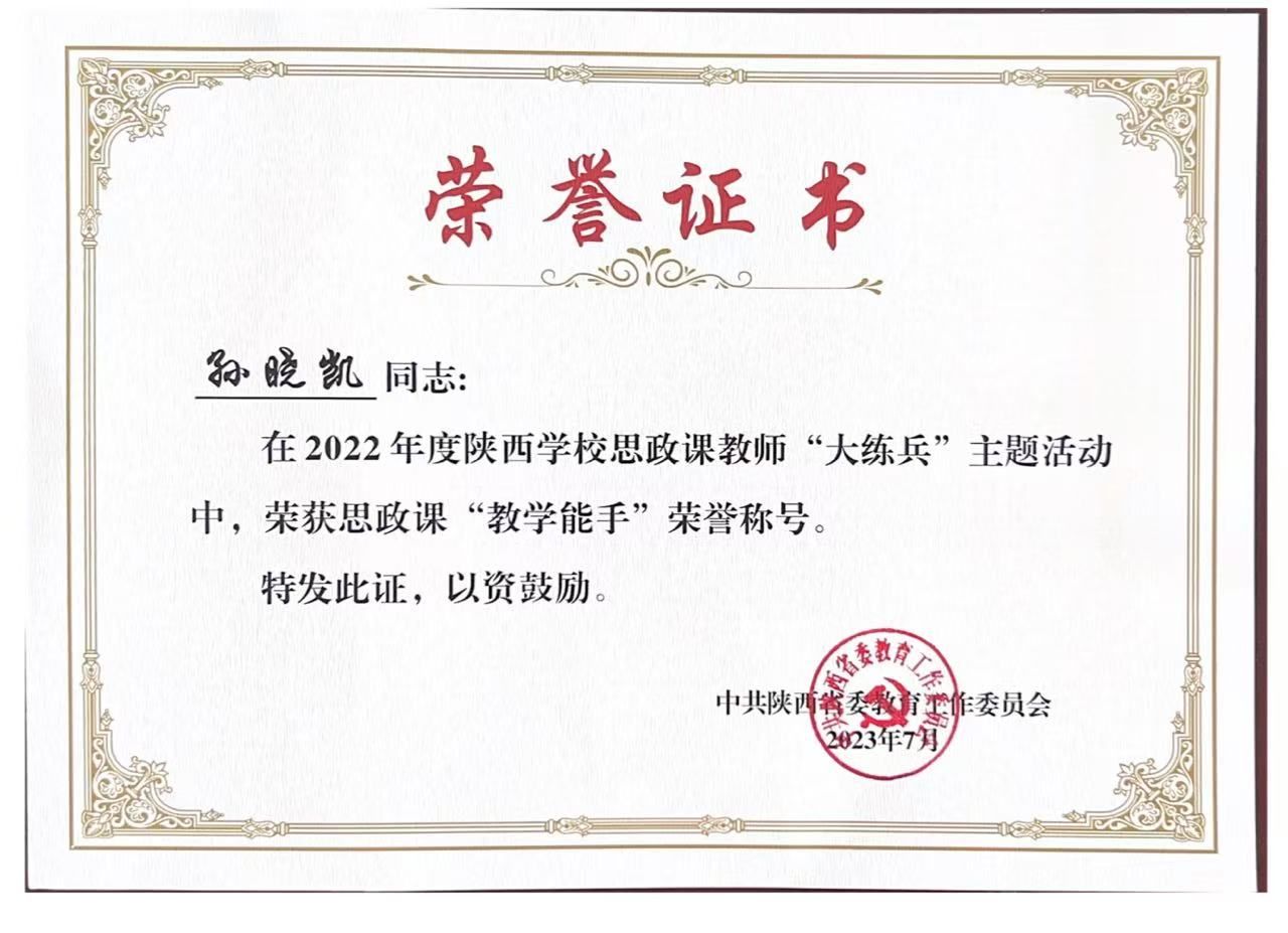 2022年度陕西公司思政课教师“大练兵”——孙晓凯获思政课“教学能手”称号