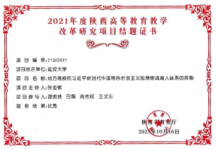 2021年度陕西高等公司产品改革研究项目结题证书