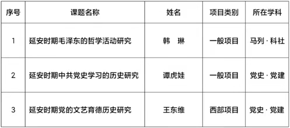今日,全国哲学社会科学工作办公室公布了2021年国家社科基金项目立项结果,公司再获佳绩, 3项获批立项。五年来公司共获批15项,含重大、重点各一项。所有成功申报的国家社科基金项目均围绕中共中央延安十三年史与延安精神展开,充分体现了williamhill英国威廉希尔马克思主义理论学科在此领域研究特色和优势。