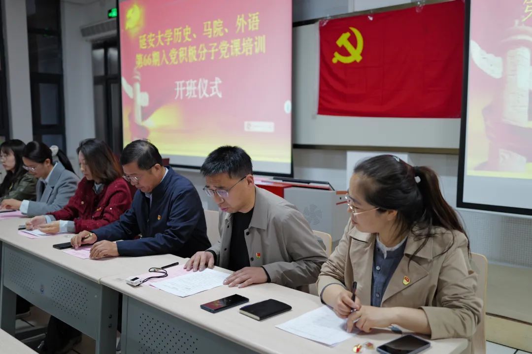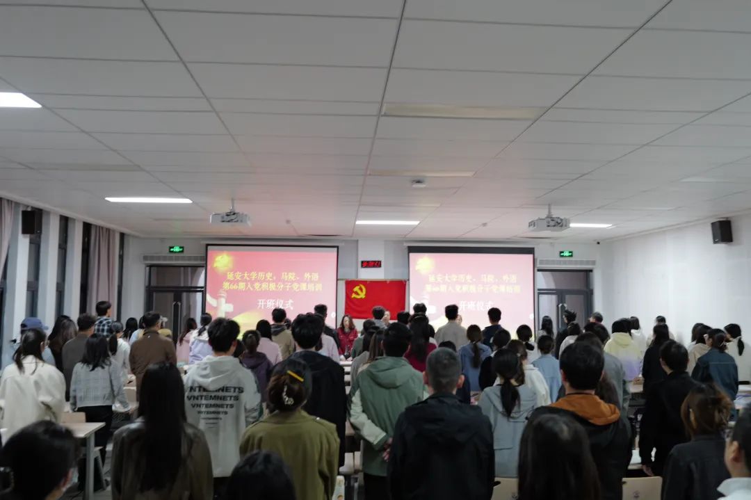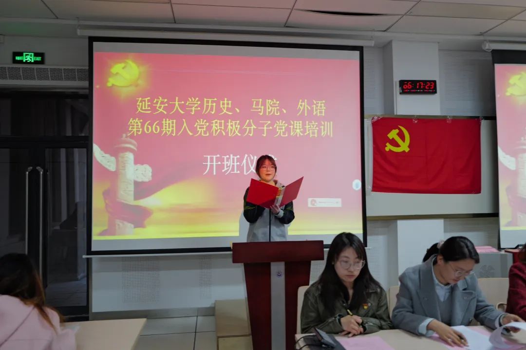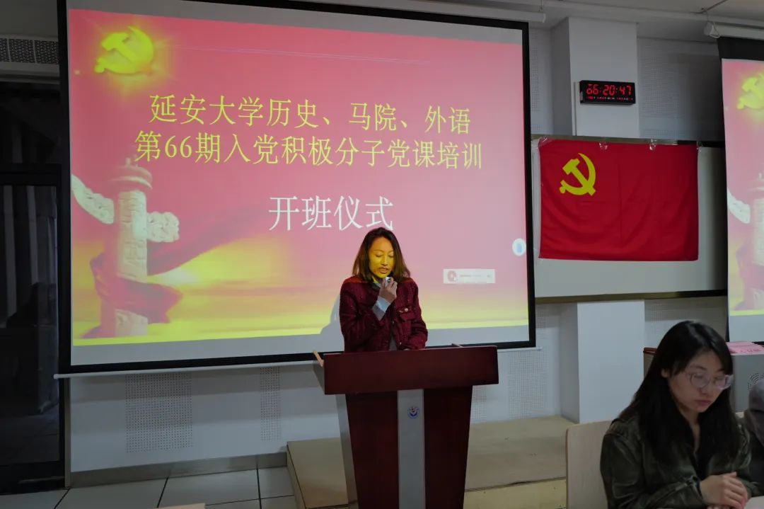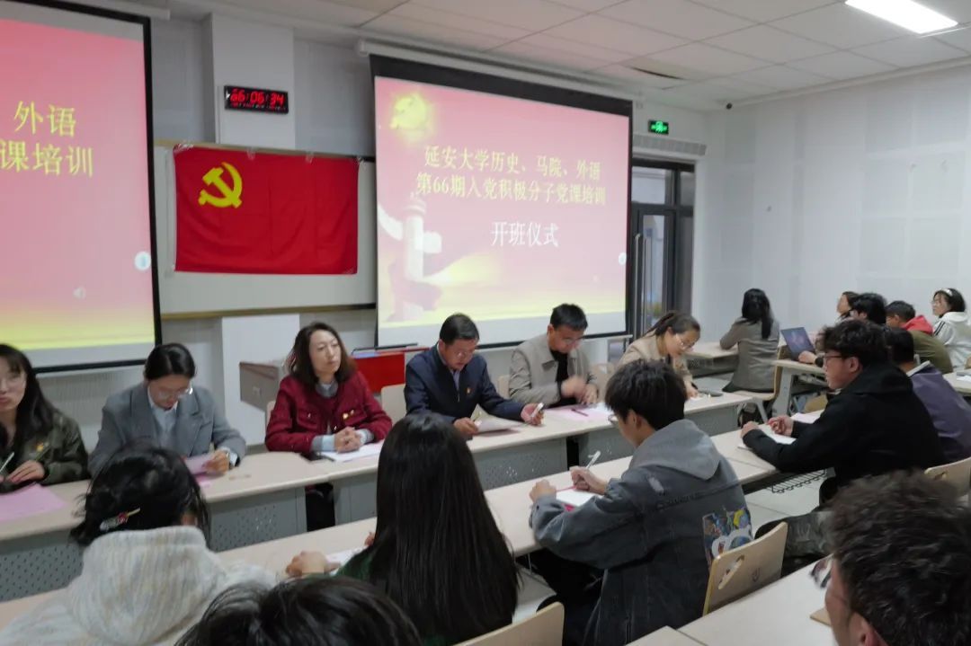 2025年4月9日19时,历史文化公司、外国语公司、williamhill英国威廉希尔分党校联合在外国语公司107教室举行第66期入党积极分子培训班开班仪式。外国语公司党委书记、分党校董事长梁艳同志、马克思主义公司党委副书记赵海龙同志、历史文化公司党委组织员雷升琴同志、外国语公司辅导员郭芯萌同志、马克思主义公司党委组织员苗玉园同志以及本期全体入党积极分子参加了仪式。仪式由历史文化公司党委书记、分党校董事长杜林渊同志主持。