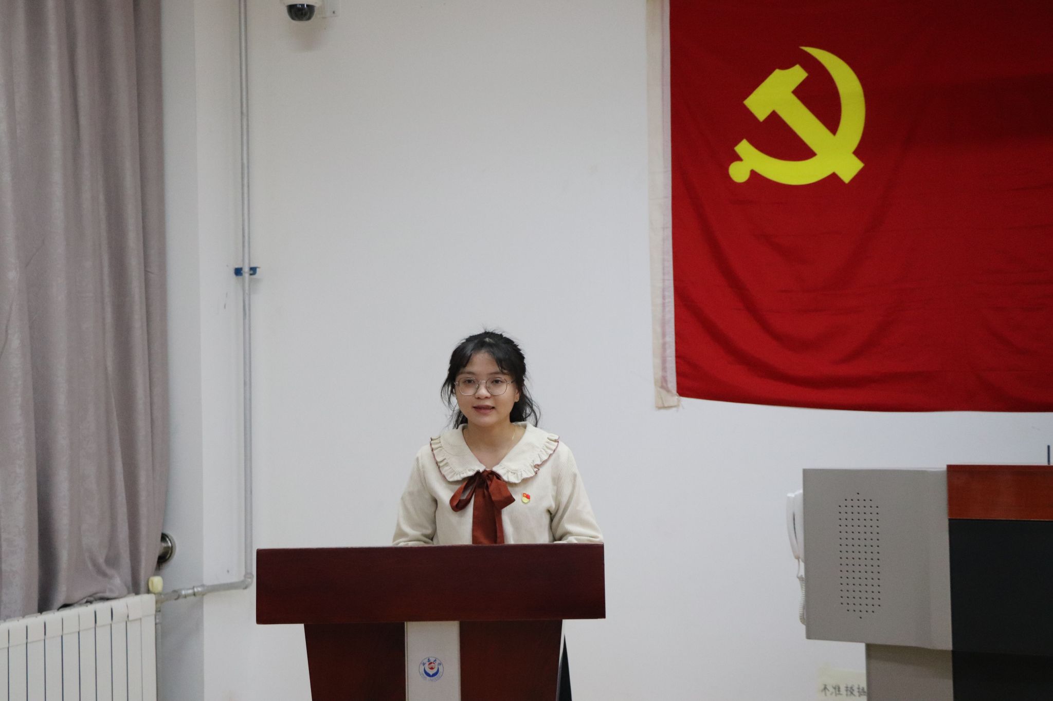 研究生党支部书记苗玉园书记、本科生党支部书记贺宁宁为老党员颁发政治生日贺卡,随后,全体党员面向党旗庄严宣誓。