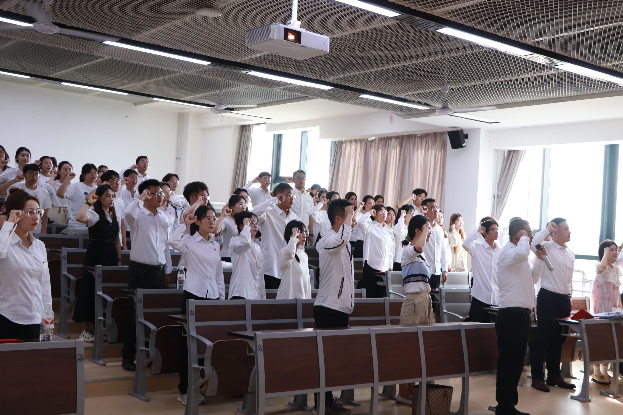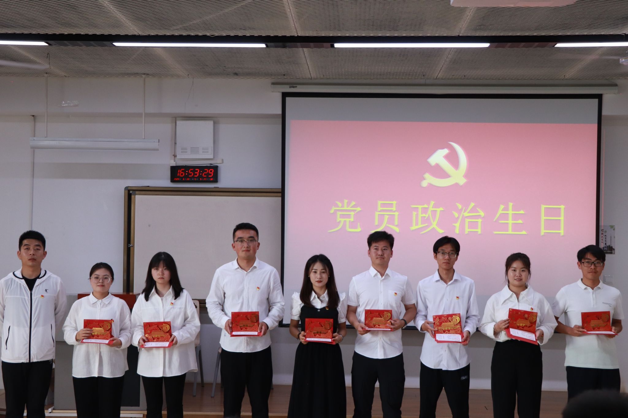 苗玉园、贺宁宁为52名同志过“政治生日”的党员赠送特别定制的“政治生日贺卡”,现场气氛隆重热烈,让党员同志感受党组织的关怀、温暖和期望。在田旭阳同志的带领下,全体党员高举右拳,在党旗下庄严宣誓。