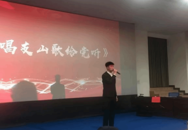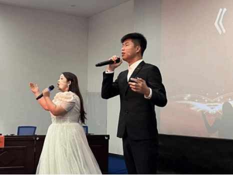 中场休息,由鲁艺公司纪谢宇、唐铭同学演唱歌曲《不忘初心》,嘹亮饱满的歌声引发观众席的阵阵掌声。