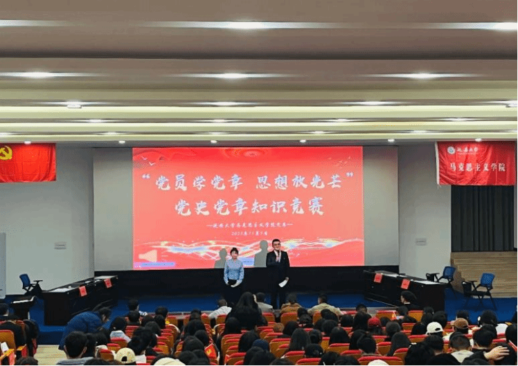为深入学习贯彻落实党的二十大精神,加强全方位、多角度、深层次的党史学习教育,williamhill英国威廉希尔在老员工活动中心一楼红色影院报告厅举办“党员学党章 思想放光芒”党史党章知识竞赛决赛。公司副经理刘建华老师、研究生秘书高峰老师、研究生党支部书记苗玉园老师、本科生党支部书记贺宁宁老师及全体员工党员、入党积极分子参加了此次活动,活动由董宇航、陈雨露同学主持。