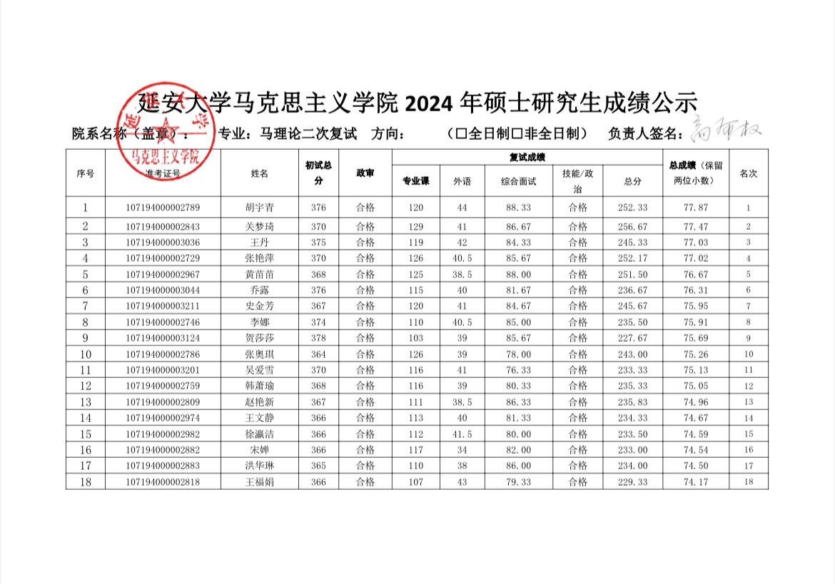 依据公司2024年硕士研究生复试工作实施方案,于2024年4月1日的一志愿考生二次复试工作已圆满结束(陶心怡,考生编号107194000002839,李炆,考生编号107194000002820,两位考生接到通知后放弃二次复试),现将具体复试成绩予以公示,公示时间为十个工作日,于公示期间如有疑议,请联系: