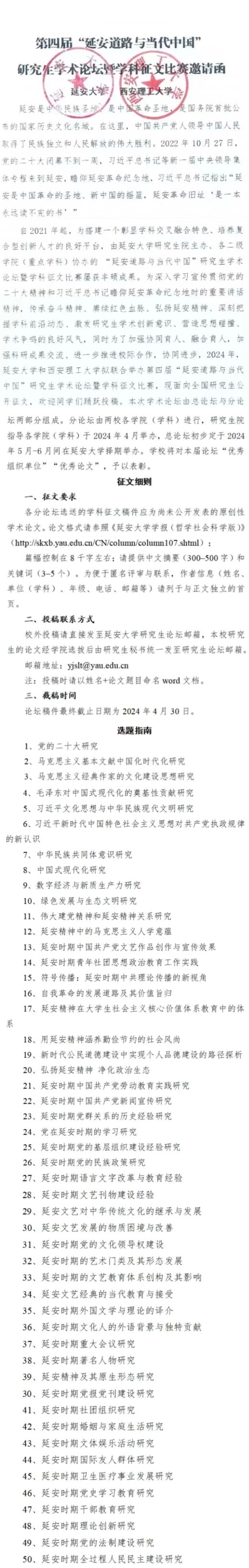 第四届“延安道路与当代中国”研究生学术论坛暨学科征文比赛邀请函