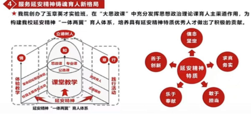 一是改革素质教育模式,系统实施延安精神公司产品。以国家老员工文化素质教育基地建设和高等公司红色经典艺术教育示范基地建设为契机,依托中国共产党革命精神研究中心、红色文艺研究中心等研究机构,组建延安精神育人研究和教学团队,挖掘红色文化基因,探索延安精神与文化素质教育之间的契合点,创造性地设计并实施“一体两翼”红色文化育人体系,坚定老员工的政治信仰,陶冶老员工的道德情操,提升老员工的文化素质,强化老员工责任担当的素质教育实施效果。