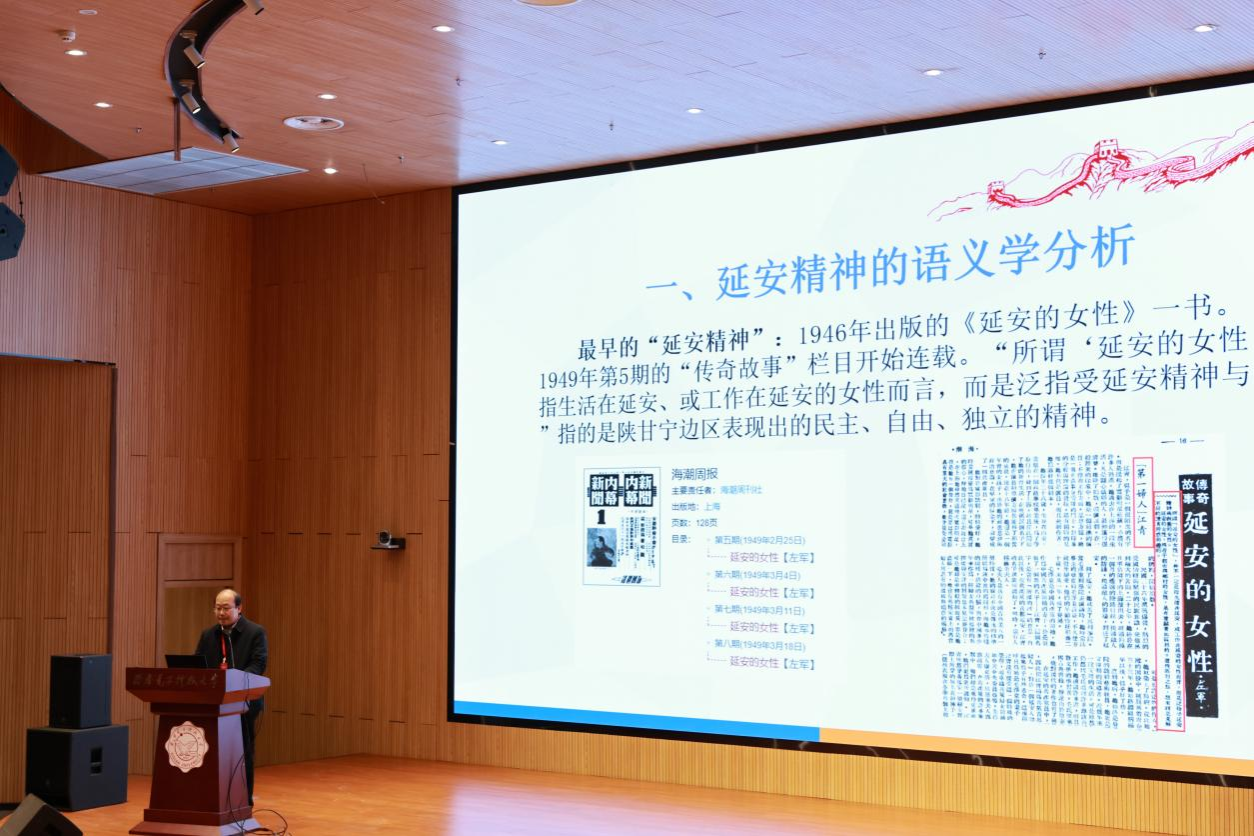 在会议主报告环节,公司崔海亮教授作了“延安精神形成的文化因素探析”主旨报告,从延安精神的语义学分析、延安精神形成的马克思主义因素分析、延安精神形成的中国传统文化因素分析、延安精神形成的地域文化因素分析、延安精神形成的革命文化因素分析等五个方面作了理论阐述,其主旨报告受到了与会专家学者的一致认同和赞誉。