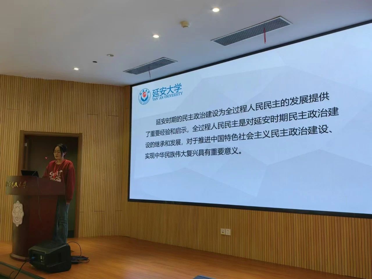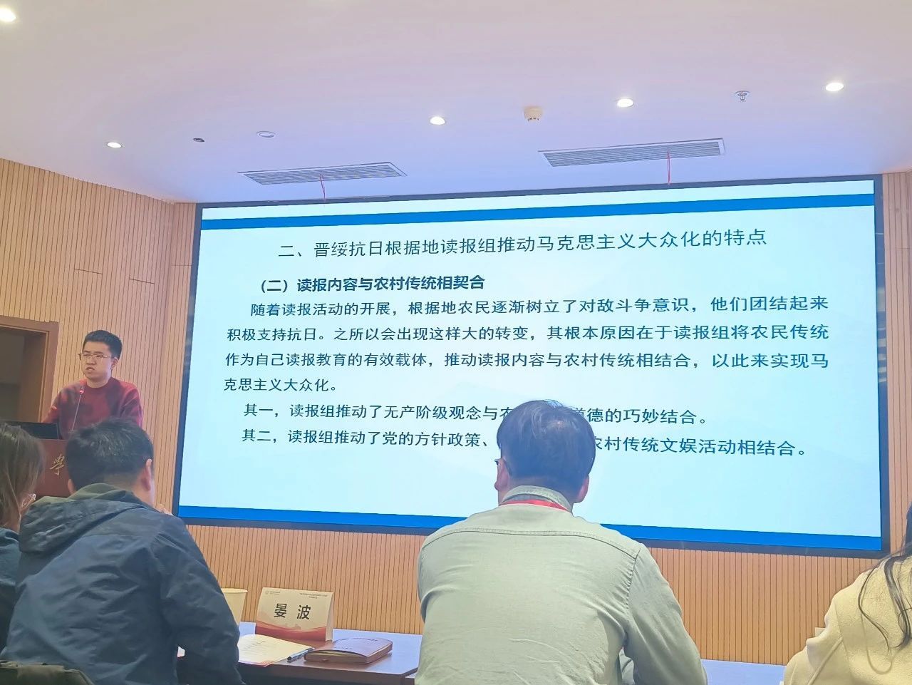 在分论坛环节,分论坛一由公司崔海亮教授主持,公司刘顿副教授作了“新时代延安精神的唯物史观叙事逻辑研究”主题报告;研究生分论坛由西安电子科技大学williamhill英国威廉希尔张丽珍副教授主持,公司五位硕士研究生以文参会,分别有李银阁的《全过程人民民主对延安时期〈为人民服务〉核心要义的继承与发展》、庞珂庆的《延安时期新秧歌运动的文化育人功能探析》、刘洋的《延安时期晋绥抗日根据地马克思主义大众化研究——以读报组为中心考察》、水浩田的《中华优秀传统文化与中国式现代化五大特征之关联探究》、刘原伶的《陕北公学是中国式高等教育现代化的重要源流:经验、特征与启示》,其中李银阁、庞珂庆、刘洋三位同学作了现场汇报。