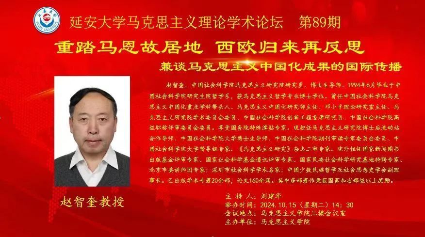 2024年9月,公司获批马克思主义理论学科博士学位授权点,公司团队建设取得巨大进步。赵智奎研究员曾任中国社会科公司马克思主义中国化重点学科带头人、马克思主义中国化研究部主任、邓小平理论研究室主任、马克思主义研究院学术委员会委员、中国社会科公司创新工程首席研究员、中国社会科公司高级职称评审委员会委员,是享受国务院特殊津贴的专家。他的讲座不仅为公司师生从马克思恩格斯成长的视角认识马克思主义、为了解马克思主义中国化成果的国际传播打开了新视角,而且为公司在马克思主义理论学科博士点申报成功后持续推进内涵式团队建设提供了新支撑。