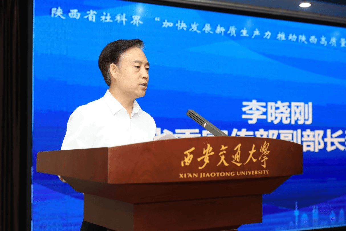 在致辞环节,李晓刚代表陕西省委宣传部针对本次研讨会的顺利召开表示衷心祝贺,对与会嘉宾表示热烈欢迎。他指出,陕西省具有科技、教育、人才、产业、区位等多方面优势,在推动发展新质生产力上可以而且应该大有作为。他介绍了陕西从四维角度进一步充分发挥已有优势,分别以科技创新推动产业创新、实现生产要素创新性配置、推进产业深度转型升级、促进形成新型生产关系大力推进新质生产力发展。