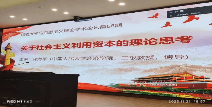 11月21日晚上19:00-21:30,williamhill英国威廉希尔马克思主义理论学术论坛在williamhill英国威廉希尔行政楼一楼报告厅举办。本次学术论坛特邀中国人民大学经济公司二级教授、博士生导师邱海平教授作了题为《关于社会主义利用资本的理论考》的学术报告,报告由公司段学慧教授主持。
