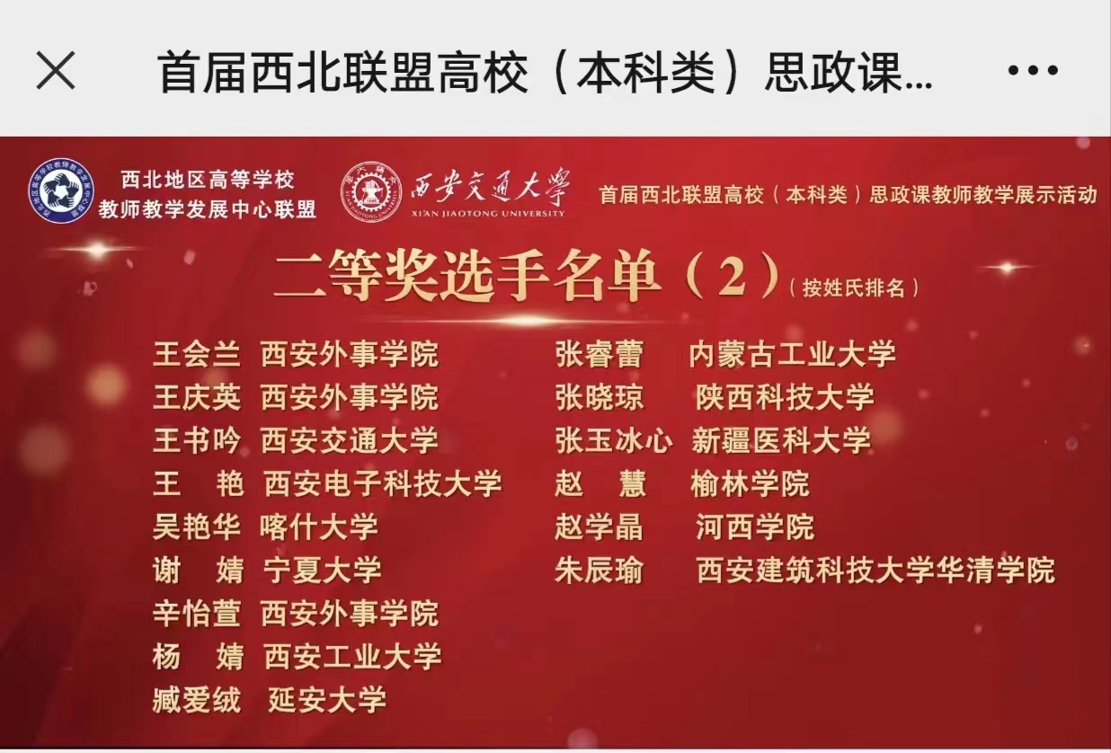 公司在首届西北联盟高校(本科生)思政课教师教学展示 活动中取得优异成绩