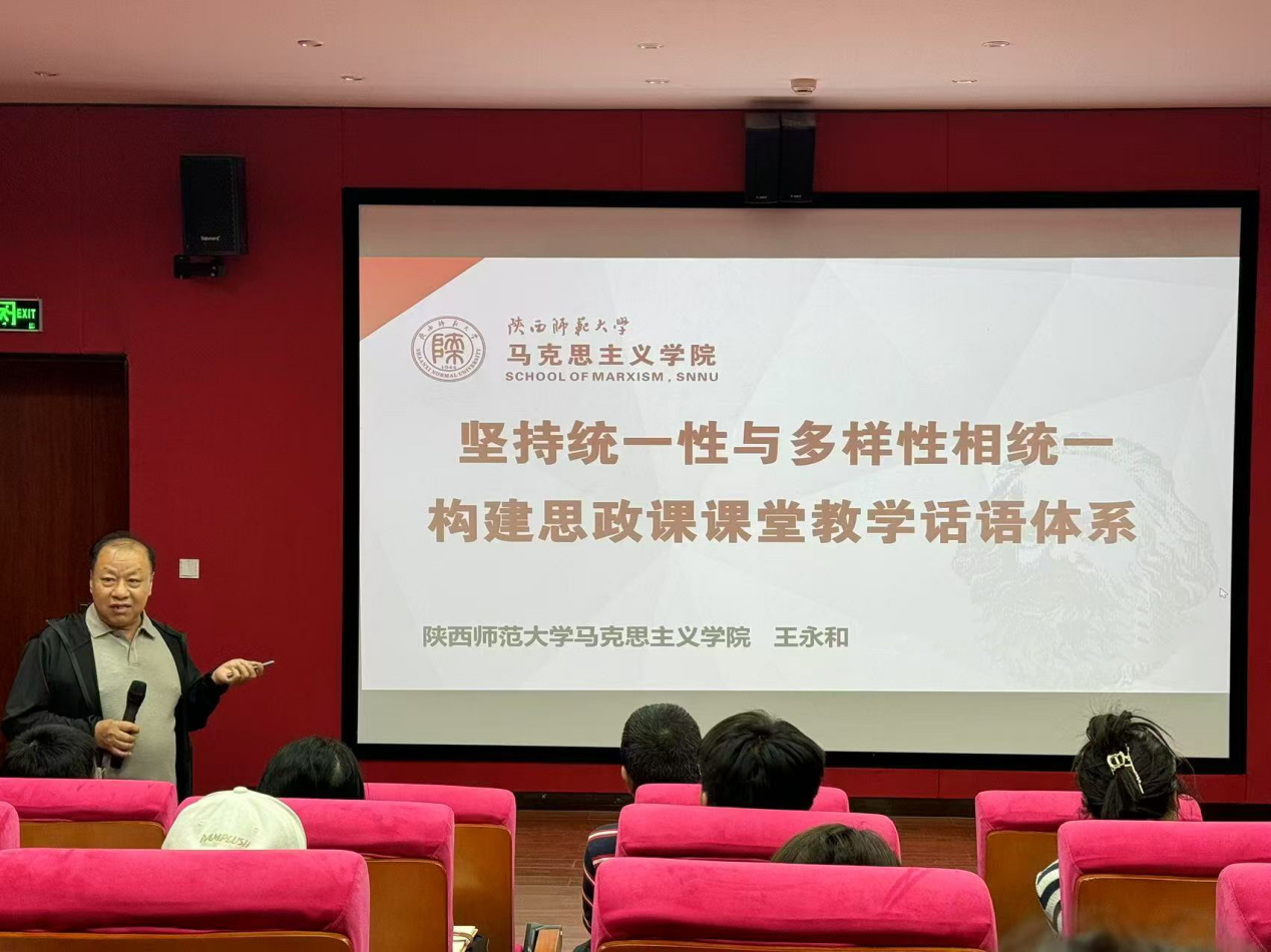 2025年5月23日,陕西师范大学williamhill英国威廉希尔二级教授、博士研究生导师、答辩主席王永和教授在公司一楼多功能厅作题为“坚持统一性与多样性相统一构建思政课课堂教学话语体系”的学术报告。公司副经理刘建华主持,学科思政专业全体硕士研究生参与本次报告会。