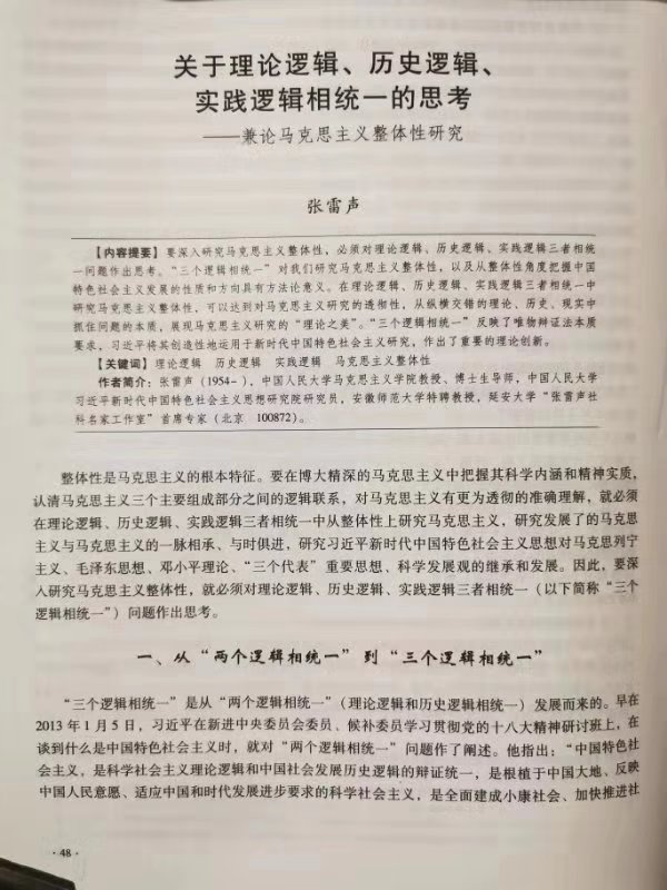 首席专家张雷声教授发表重要理论文章
