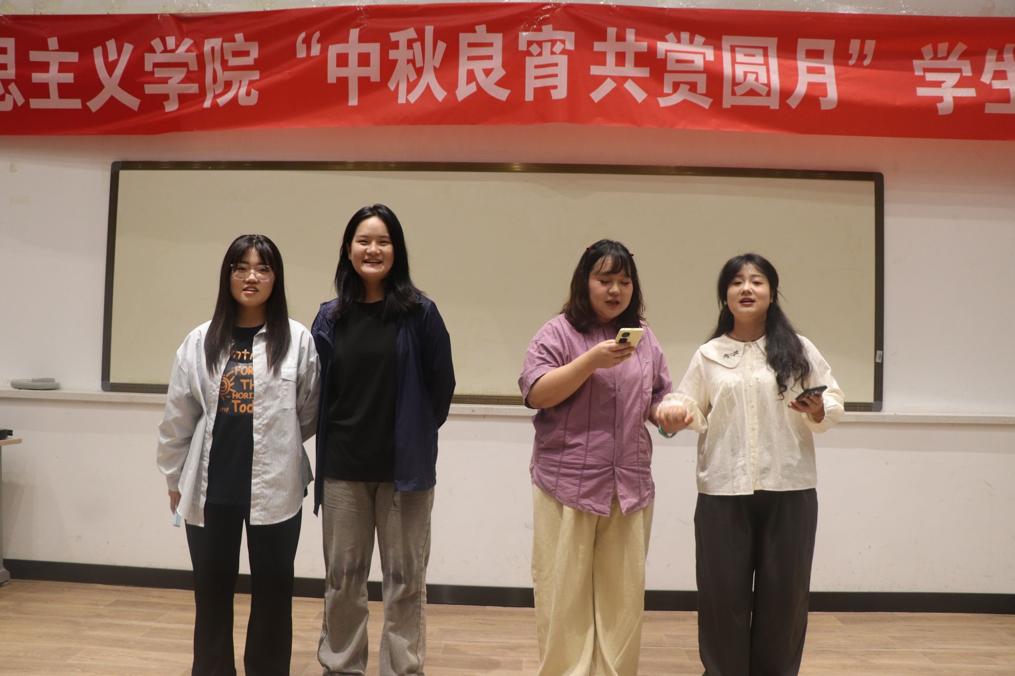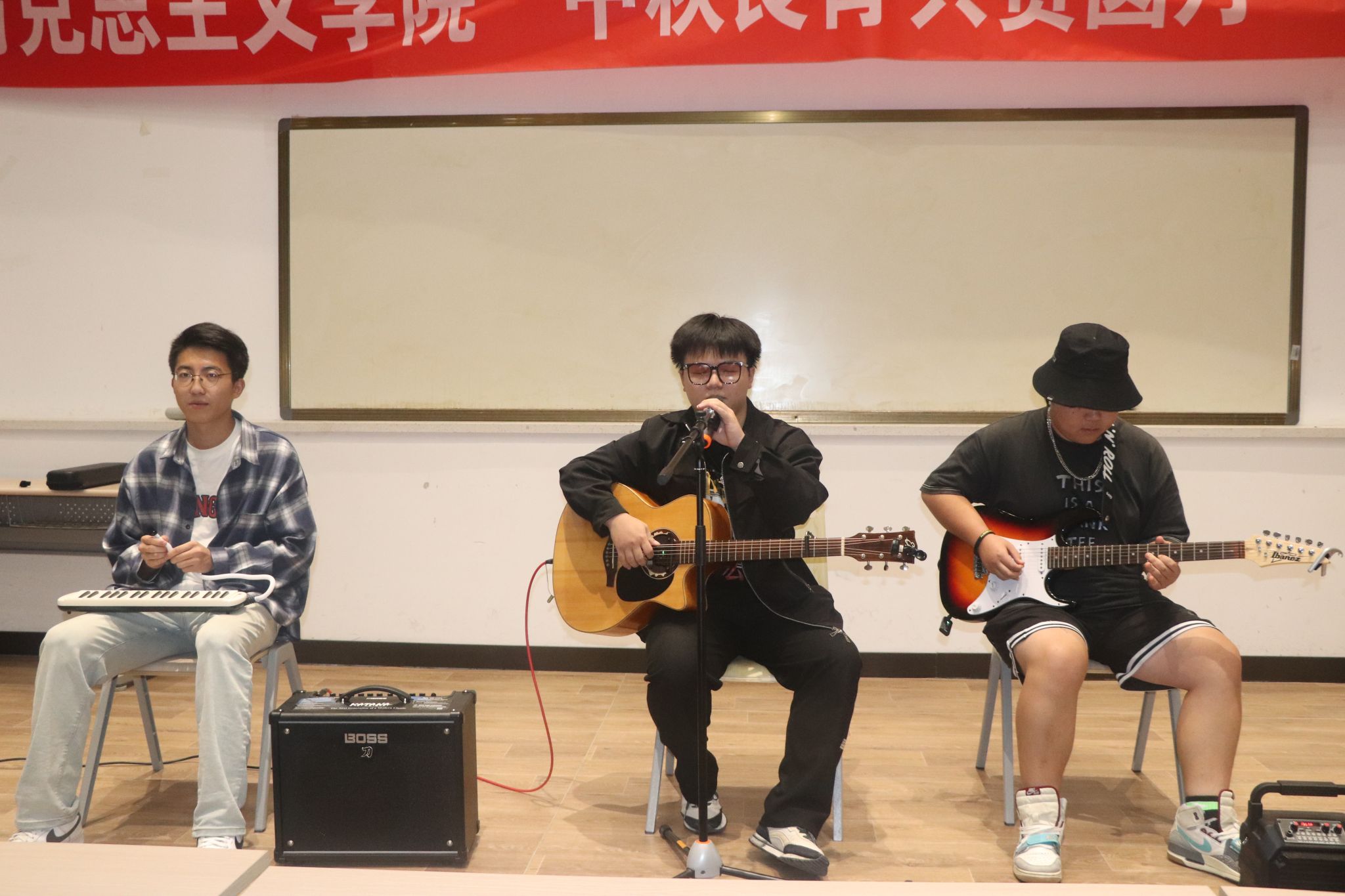 “平分秋色一轮满,长伴云衢千里明。”在中秋节里,我们不仅享受着亲情的凝聚,更能深刻感受到中华民族大家庭的和谐和团结。在中华民族的精神谱系中,家与国,己与人,是密不可分的命运共同体,晚会在激情澎湃的诗朗诵《盛开的民族团结之花》中拉开序幕。紧接着,歌曲《简单爱》的唯美呈现让我们感受到那份纯真、质朴的情感。张宇婷同学如诗如画的舞蹈将“花好月圆人团圆”的美好希冀演绎得淋漓尽致。歌曲《多远都要在一起》、朗诵《红烛》等节目将活动推向高潮,在场同学喝彩声不断。最后,文艺汇演在张艺巍等同学们带来的《明天,你好》歌曲声中落下帷幕。