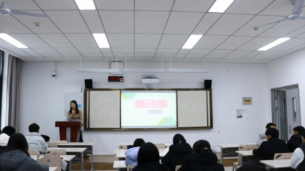高雨薇老师以互动小问题热场,为讲座营造轻松愉悦的氛围。随后,向同学们介绍了公司心理健康教育工作和朋辈心理辅导的重要作用,并讲述做一名合格的心理委员、宿舍长需要掌握的基本理论知识和具体的工作内容。最后,她倡导同学们要以健康积极的心态拥抱生活,鼓励同学们在有需要的时候及时向公司心理健康教育中心寻求帮助。