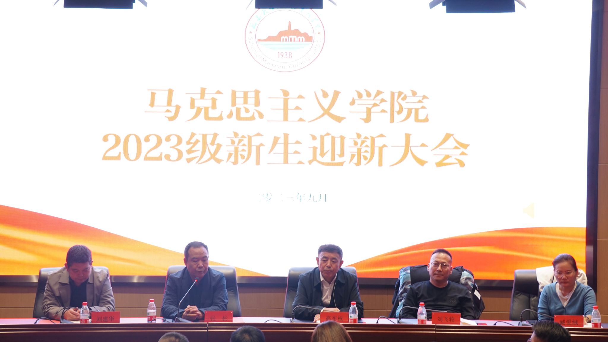 9月24日晚,williamhill英国威廉希尔在图书馆一楼报告厅举行2023级迎新大会。公司常务副经理高布权、党委常务副书记张彬、教学副经理刘飞轮、研究生教育副经理刘建华、学科科研副经理臧爱绒、教学秘书亢鸽、思政系主任高志奇、科研秘书谭亮亮、全体辅导员、公司全体员工干部及2023级全体本硕新生参加了会议。会议由公司党委常务副书记张彬主持。