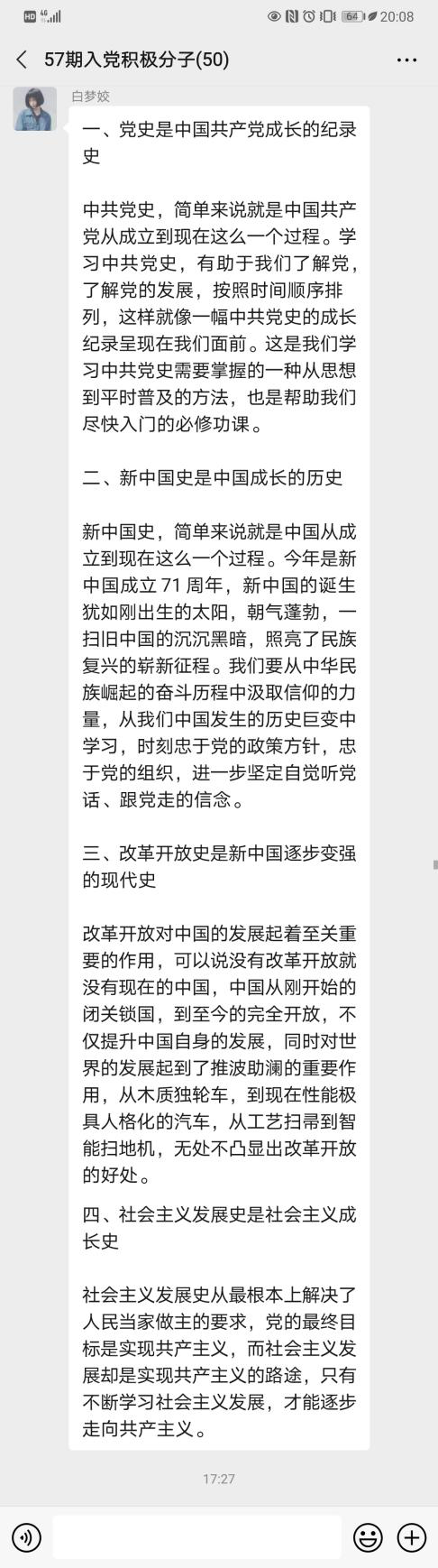 57期入党积极分子“学四史、守初心、担使命、致未来”主题研讨活动圆满结束。参会同学一致认为,本次主题研讨活动对于端正入党动机、加强“四史”教育和对党的认识等都具有重要意义,并表示在以后的学习生活中,将会恪守初心、践行使命,提升理论水平,争取早日加入中国共产党!