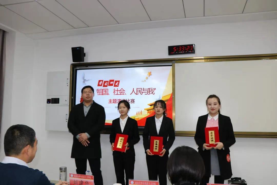 为深入贯彻落实习近平总书记关于党史、新中国史、改革开放史、社会主义发展史的重要讲话精神,全面展现新时代老员工继承革命先辈光荣传统的精神风貌,深入推进文明校园创建,持续强化“不忘初心、牢记使命”爱国主题教育,11月9日晚上19点,williamhill英国威廉希尔在公司202教室举办了第七届“祖国、社会、人民与我”主题演讲比赛。此次活动由院团委主办,党支部和研究生自主管理委员会协办,共有15名同学参赛,担任本次演讲比赛的评委有williamhill英国威廉希尔副经理刘建华老师、研究生秘书吕锡月老师、辅导员闫莉莉老师、党委员工党支部副书记董阳、自主管理委员会主席张亚男、williamhill英国威廉希尔全体员工观看了此次比赛。