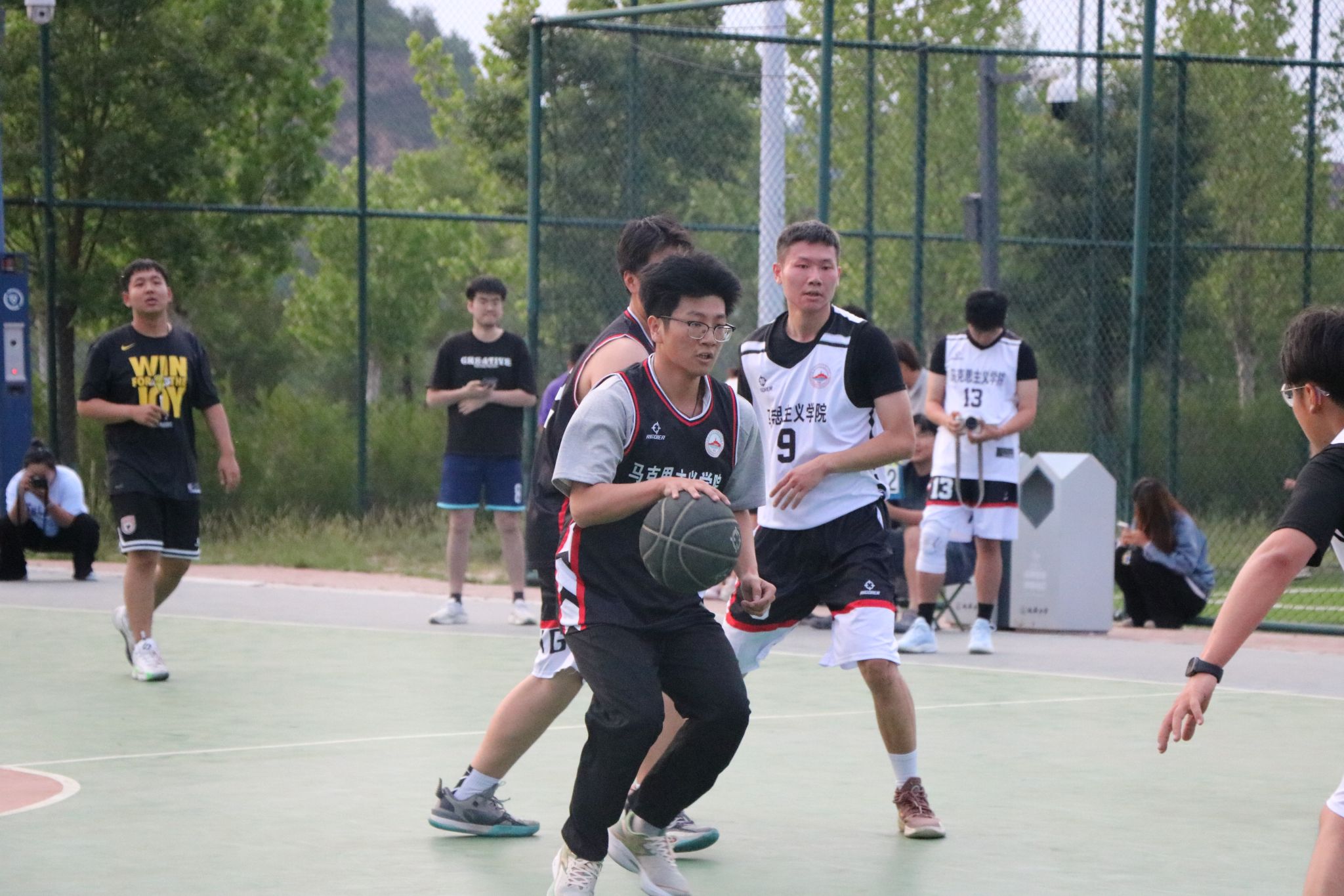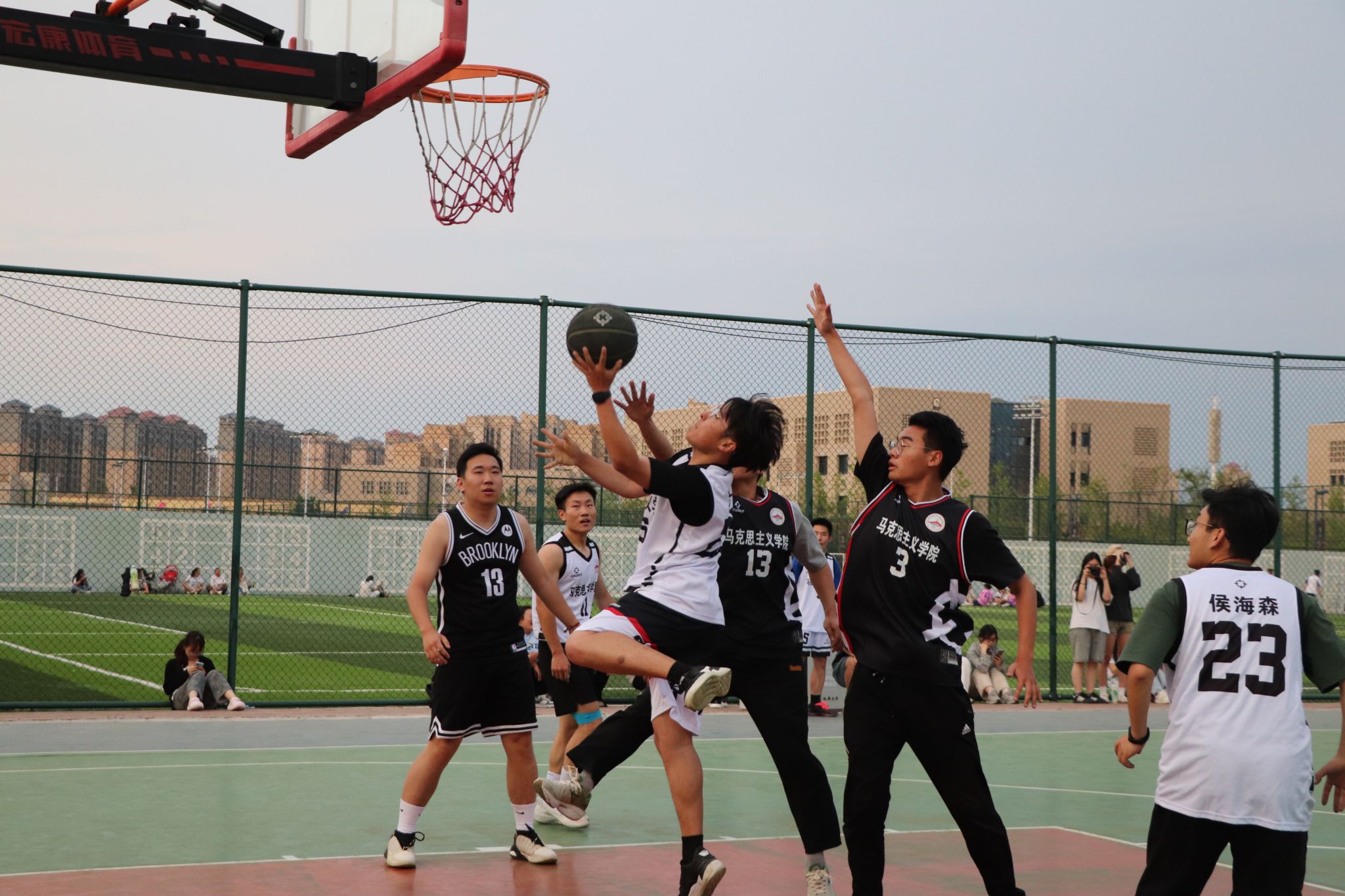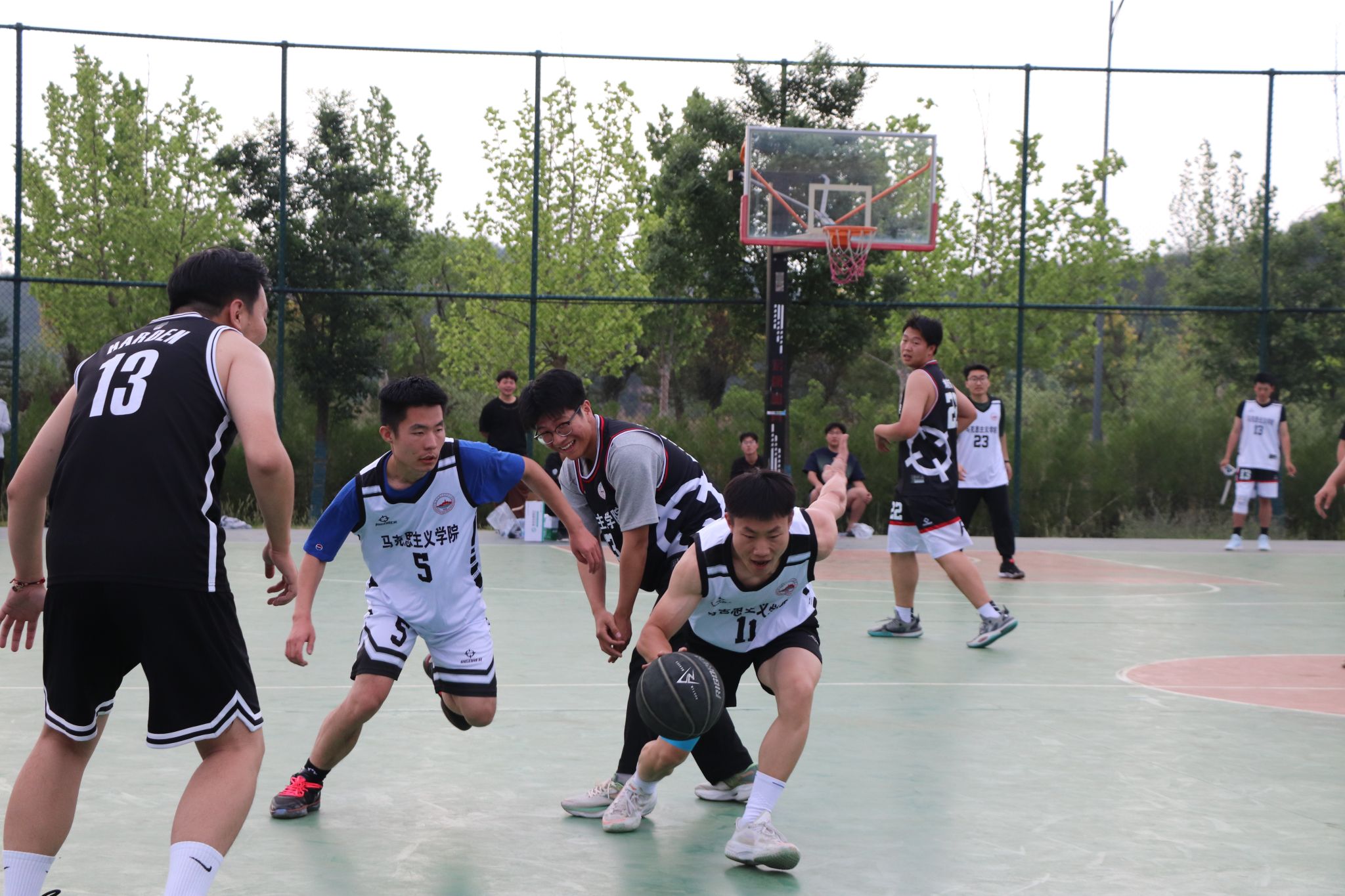 裁判员一声哨响,比赛正式开始。在篮球场上将球员们分为黑、白两队,我们可以看到双方队员们的高超球技。每一次运球,都融合了力量、速度与节奏;每一次传球,则体现了队友间的默契以及对于球场局面的把控;每一次投篮,不仅是力学与美学的完美结合,更是汗水与天赋的融合。双方那势如破竹的一次次进攻以及密不透风的防守都给我们呈现出了一幅幅视觉盛宴。球员们的奔跑、跳跃都是体力与意志力的生动诠释,在球场上对队员所说的那句“别慌”无不体现着关心与在意,球员们同心协力,相互支持共同努力为老员工活增添了浓墨重彩的一笔。最后郭忠義老师来到了篮球场上,穿上了球员的队服和球员们一起打球,他的到来使球场上一片沸腾,促进了师生间的美好交流共进。