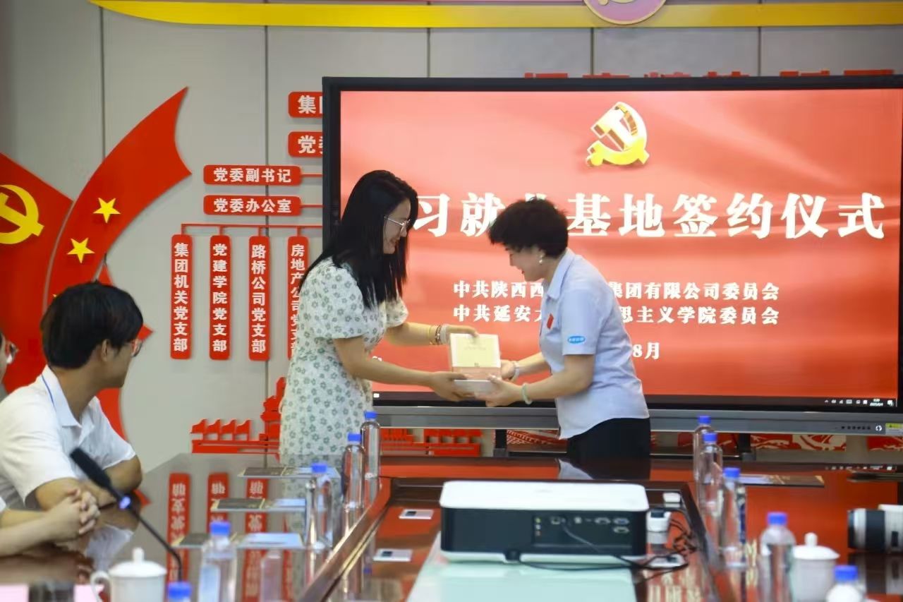 在走访交流座谈会上,调研组与单位负责人深入交流,介绍了公司各公司的学科优势、人才培养特色及毕业生就业情况,用人单位详细介绍了其发展现状、人才需求以及校企合作意向。双方围绕人才培养、实习实践、毕业生就业、科研协作等方面进行了广泛深入的探讨。赵海龙向用人单位授挂“实习就业基地”牌匾并签署了实习就业基地合作协议。苗玉园向合作单位赠送了《平凡的世界》及党史党建等相关书籍资料。