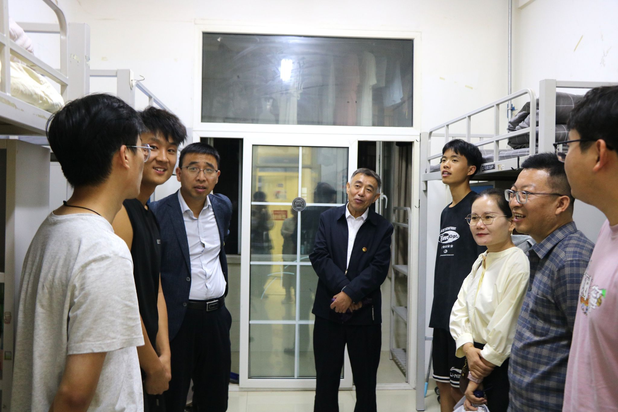 “春风化雨润桃李,润物无声暖人心。”新学期伊始,为帮助2025级新生快速适应校园环境、切实传递公司对新生的关怀与期许,公司党委书记张彬,经理高布权,党委副书记赵海龙,副经理刘建华、臧爱绒、亢鸽,辅导员、行政人员等一行十余人于9月2日晚前往新生宿舍看望2025级本硕博新生。