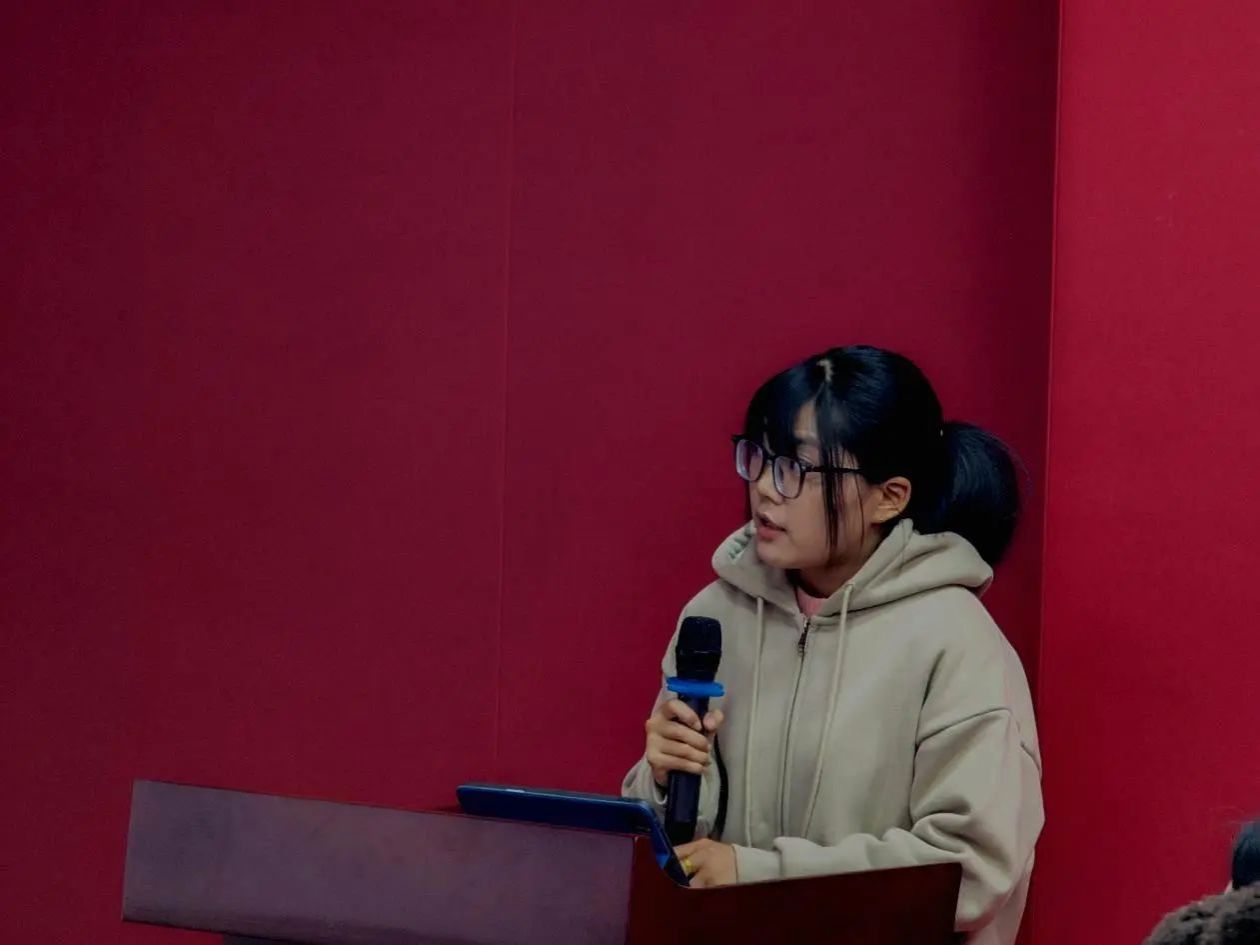 随后,第二位分享人王丹同学对《反对本本主义》进行了阅读分享。首先,她先介绍了这篇失而复得的著作是如何重现于世的。其次,从写作背景、主要内容、核心观点、历史意义等方面进行详细解读。她介绍到《反对本本主义》是在共产国际的错误指导和党内“唯共产国际论”以及经过一番大斗争以后写出来的。文章从理论上阐述了毛泽东思想活的灵魂即实事求是、群众路线、独立自主的三个基本点,为复兴中国革命和争取中国革命的胜利指明了前进方向。同时,重温《反对本本主义》,对于开启全面建设社会主义现代化国家新征程、实现中华民族伟大复兴具有重要现实意义。最后,王丹同学分享了阅读感悟,我们要弘扬实事求是精神,践行群众路线,发扬独立自主精神,大兴调查研究之风。在实践活动中,应深入实际,了解群众关切和需求,要有自主意识,敢于质疑权威观点,勇于开拓创新。