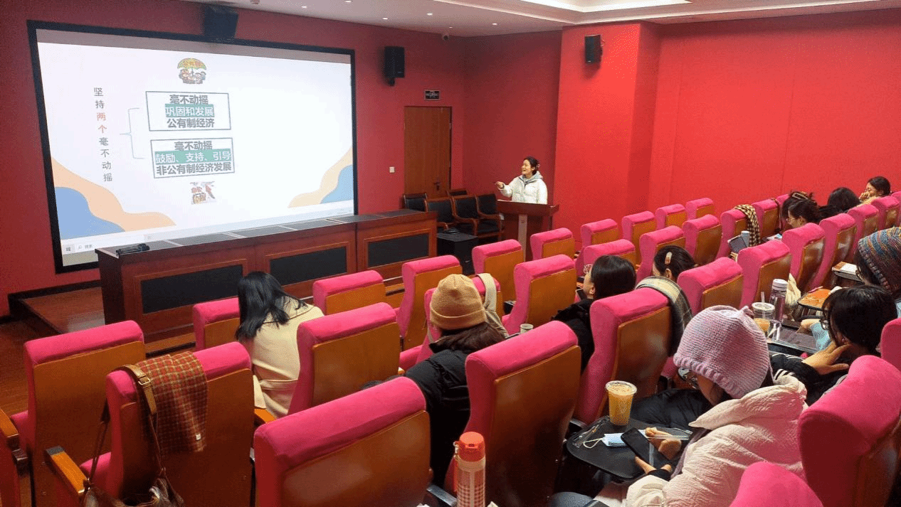 张孟玉同学试讲的是高中政治必修二的《坚持两个毫不动摇》。本节课通过“如何发展壮大我国的国有经济”为总议题展开,以我国国有企业的发展趋势为导入,吸引员工探讨我国当今的国企情况,让员工在合作探讨与交流中发现问题并解决问题。试讲结束后,谢延秀老师和杨文军老师进行了点评。谢延秀老师指出,讲课过程中个别内容举例不够准确,建议在一些例子的讲解上多下点功夫。杨文军老师提出前期备课有“三备”,在“备教案”方面功夫下得还不够深,需要更进一步地完善。