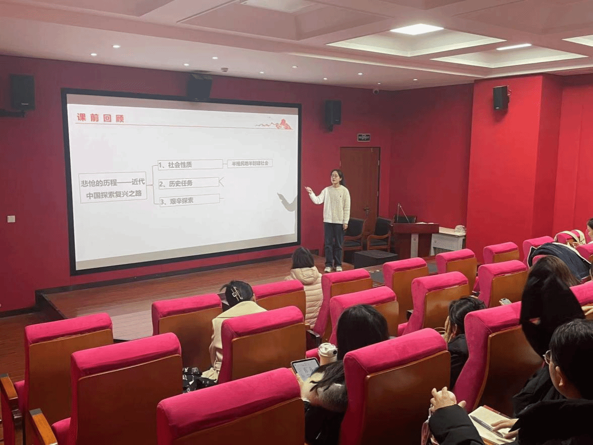 刘文瑞同学试讲的是高中思想政治必修一《新民主主义革命的胜利》。她主要从两个议题来进行教学,分别是“悲怆的历程—近代中国探索复兴之路”和“胜利的征程—新民主主义革命”,从这两个议题的逻辑关系中引领同学们认识新民主主义革命及其伟大历史意义。试讲结束后,亢鸽老师进行了点评,对讲课逻辑、教学目标、教学重难点、视频导入等问题进行了指导,并提出改进建议,指出在今后的教学中要结合员工思想实际,从员工的角度出发进行教学。