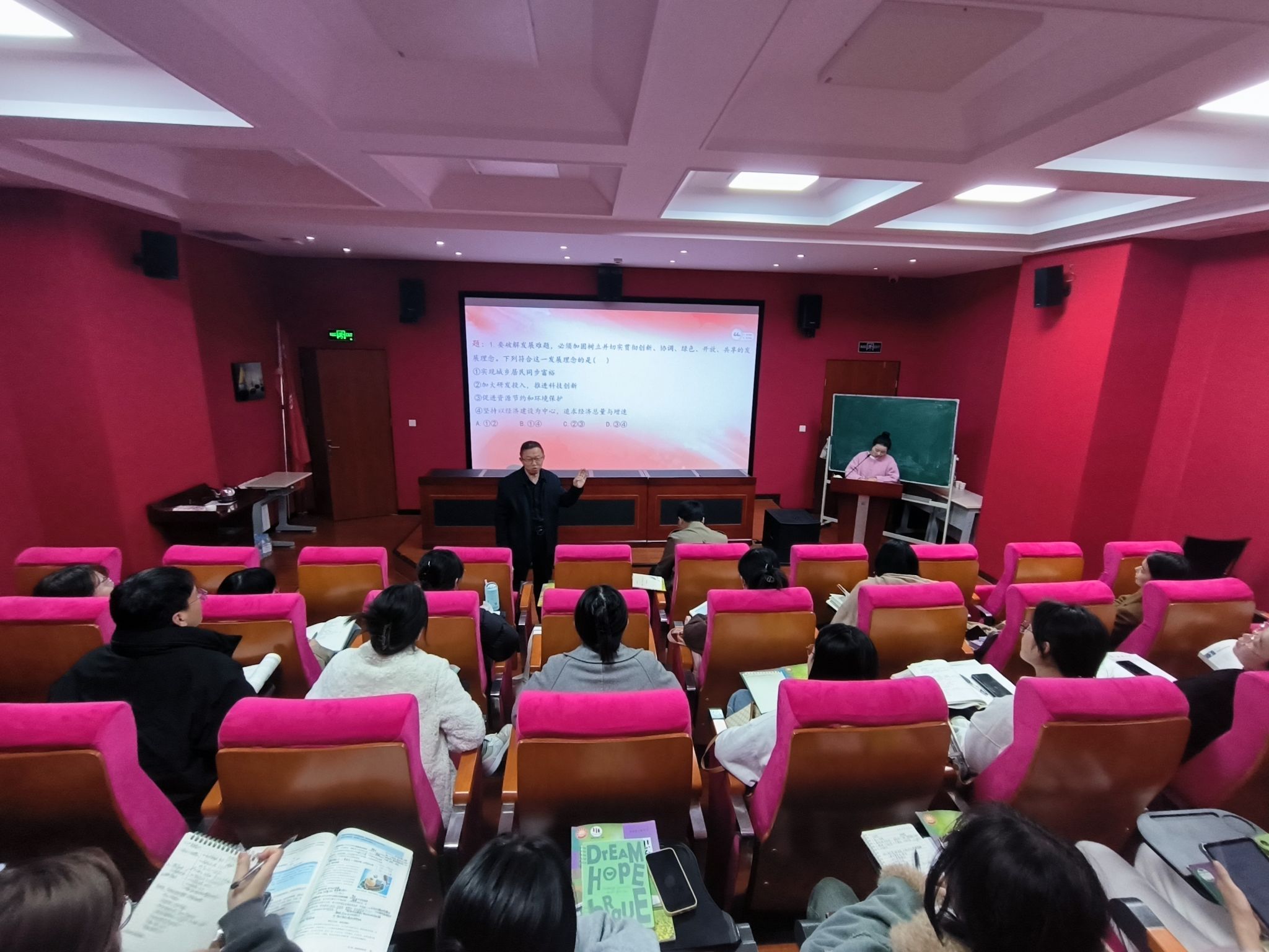 李娜娜同学试讲的是高中政治必修二的《坚持新发展理念》。她主要通过案例和思考题来引导同学们认识新发展理念的内容及其内部关系。课程中分别运用了讲授法和讨论法以及合作探究法等,使员工明确了新发展理念的具体内容,以及如何贯彻新发展理念。课程中还强调,要对五大新发展理念的具体内容有所区分。试讲结束后,在教师评价环节,杨文军老师和赵海龙老师就讲课方式等问题进行了指导,对教学环节的内容安排指出了不足之处,叮嘱在今后要加强知识积累以应对课堂中的各种问题。
