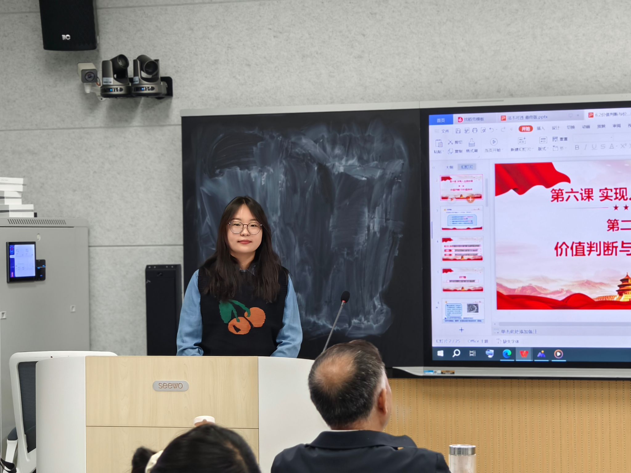 曹慧慧同学的授课内容为高中政治必修四第六课第二框《价值判断与价值选择》。在课堂导入环节,她以一段生动的视频切入,展现了延安时期无数有志青年不畏艰难、奔赴革命圣地的历史场景,由此引发员工思考“青年为何作出这样的选择”,自然过渡到本节课的主题。在新课讲授环节,她采用议题式教学法,围绕两个核心议题展开。 议题一:青年如何理解价值判断与价值选择?结合延安青年的案例,引导员工分析其行为背后的动机,逐步归纳出价值判断与价值选择的含义、关系及产生。议题二:青年怎样作出正确的价值判断与价值选择?她通过播放《中国青年,好样的!》视频,并结合社会主义建设时期青年投身国家建设的典型案例,组织员工讨论不同时代青年选择的异同,最终总结出价值判断与价值选择的基本特征与标准。在课堂总结部分,她将个人理想与国家发展相结合,强调“个人梦与中国梦的统一”,激励员工在人生道路上作出正确的价值判断与价值选择,成就更有意义的人生。