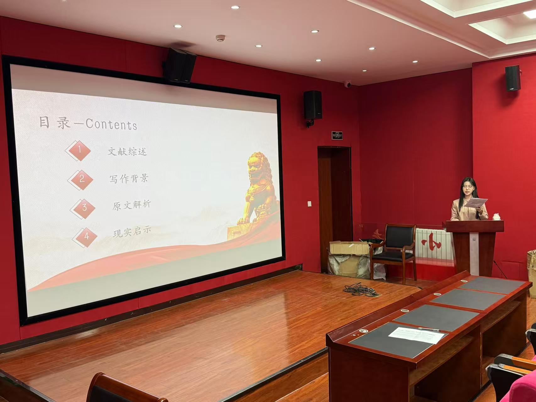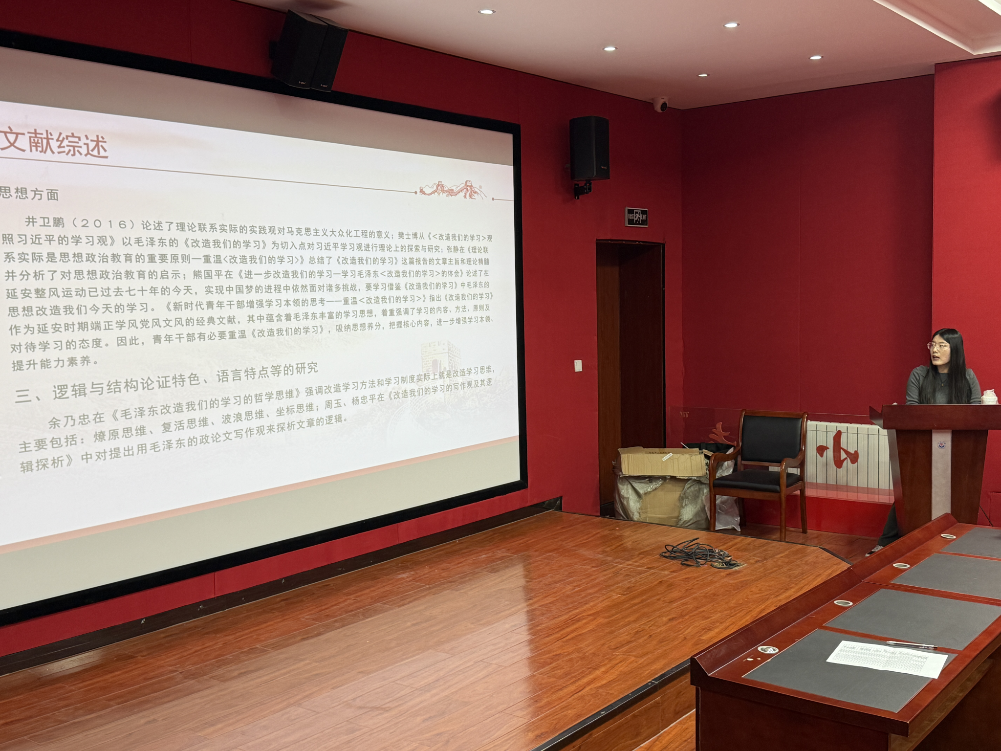 2025年4月28日,“马克思主义经典文献研读” 系列第五十九期学术活动在williamhill英国威廉希尔一楼报告厅举行。此次读书会聚焦于毛泽东选集,围绕《改造我们的学习》《反对自由主义》两部经典文献展开深入研讨。2024级思想政治教育方向的硕士研究生李佳、徐春雨两位同学依次登台,就各自研读经典文献的心得与见解作了详细报告分享。